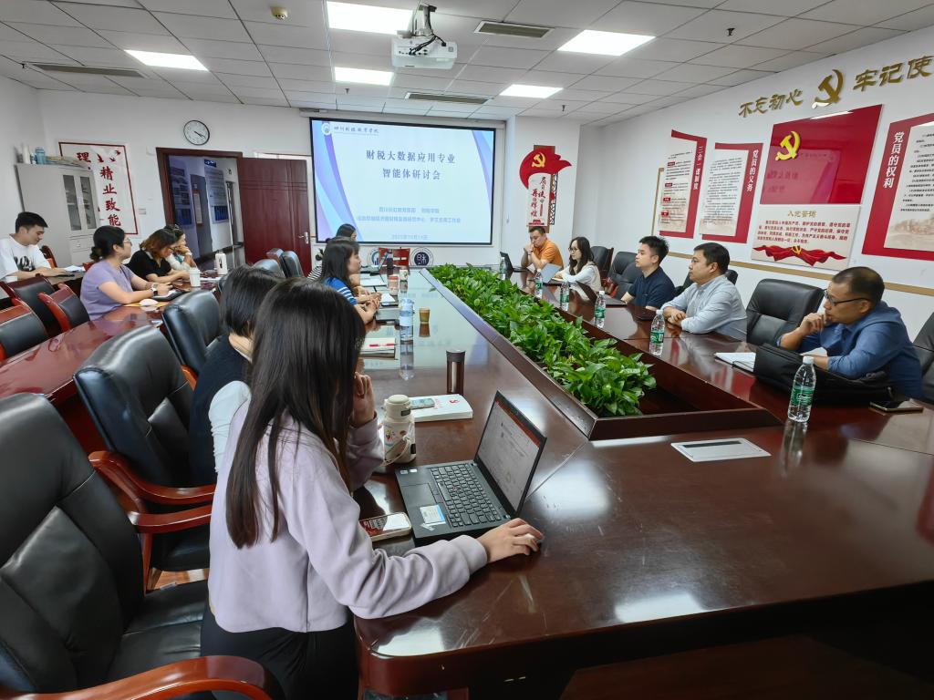 2025年10月14日,财税大数据应用专业教研室在明德楼512会议室顺利召开智能体研讨会。本次会议由财税学院主办,联合“成渝双城经济圈财税发展研究中心”与“罗艾名师工作室”共同组织。旨在推动财税大数据技术与智能体在税务专业教育领域的深度融合,探索校企合作新模式。财税学院副院长罗艾、四川长虹教育集团一行,以及财税大数据应用教研室全体教师共同参与了此次研讨。