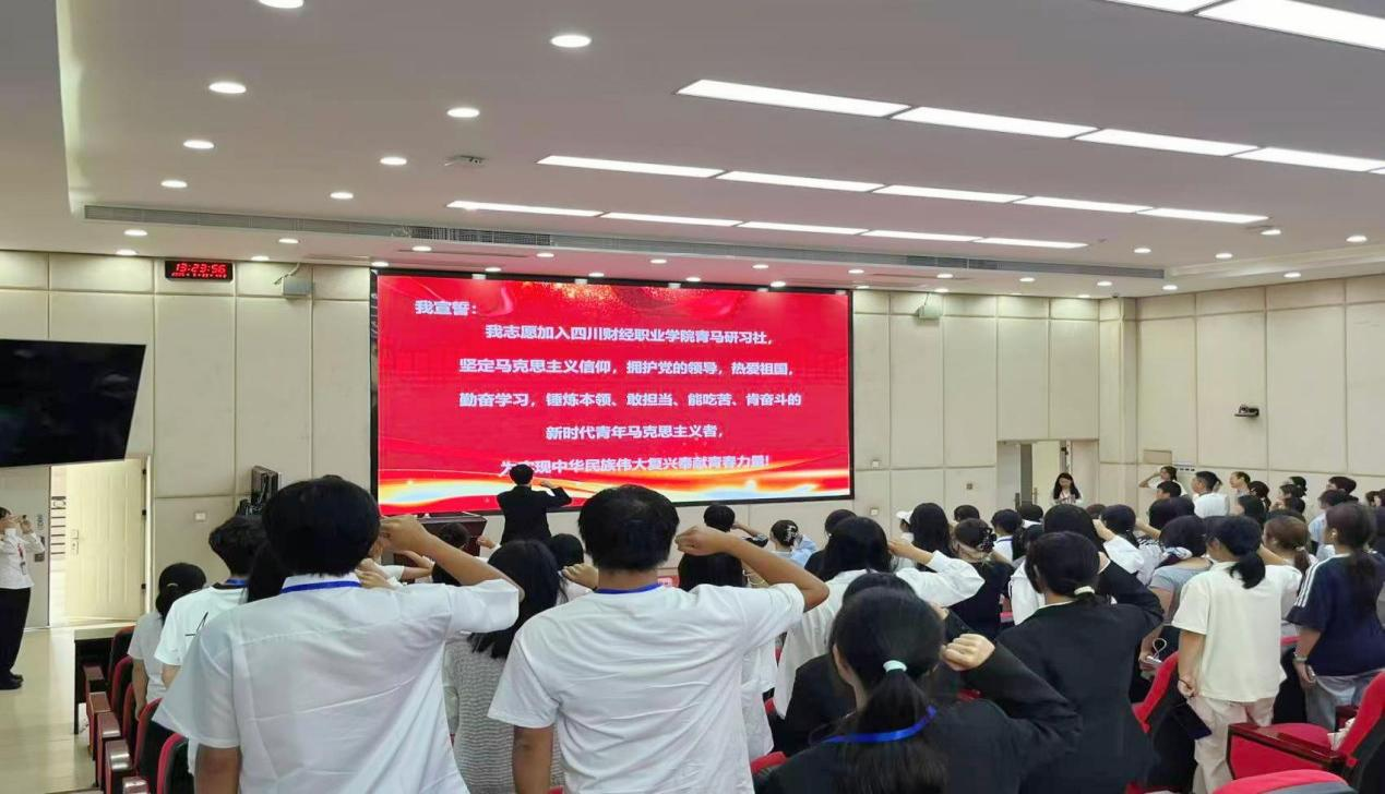9月28日中午,四川财经职业学院第三届青马研习社会员大会在至诚楼B213教室隆重举行。马克思主义学院党总支书记李平、红色财经文化研究中心副主任欧美强、学生工作部副部长廖中强、党建与思政研究中心副主任张志,青马研习社指导教师钟玲、林琳、肖松松及社团180名会员参加了大会。