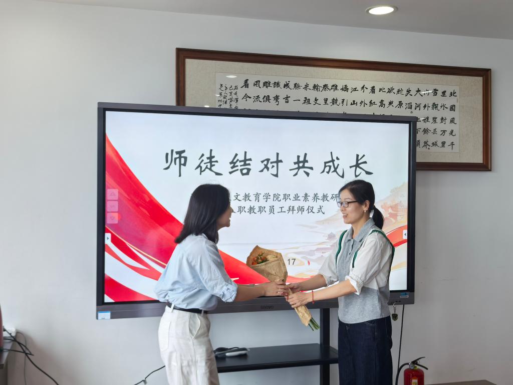 为进一步提升学院教师队伍的整体素质,加速青年教师的专业成长,充分发挥资深教师“传、帮、带”作用,2025年10月17日,通识与人文教育学院职业素养教研室在明德楼713会议室举行新进教职员工拜师仪式。