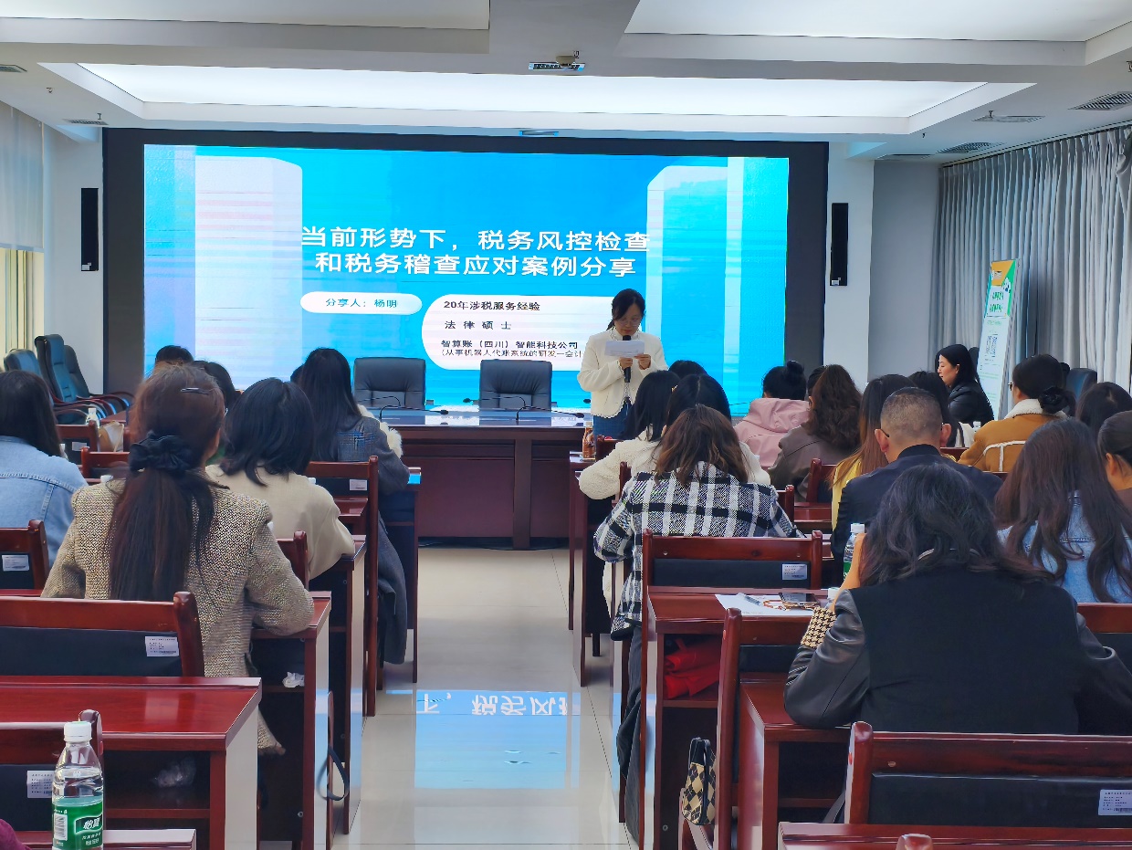 本次党建联建,协会副秘书长、四川明智慧通税务师事务所总经理杨明作《当前形势下税务风控检查与稽查应对案例》专题报告。他结合虚开增值税发票、隐匿收入、税收优惠滥用、逃逸式注销、个体户涉税、咨询服务费处理及境外投资等七大场景,通过真实案例解析风险要点,分享内容翔实,针对性强,为与会人员在日后工作中精准识别和有效应对税务风险提供了清晰的指引和宝贵的实战经验。