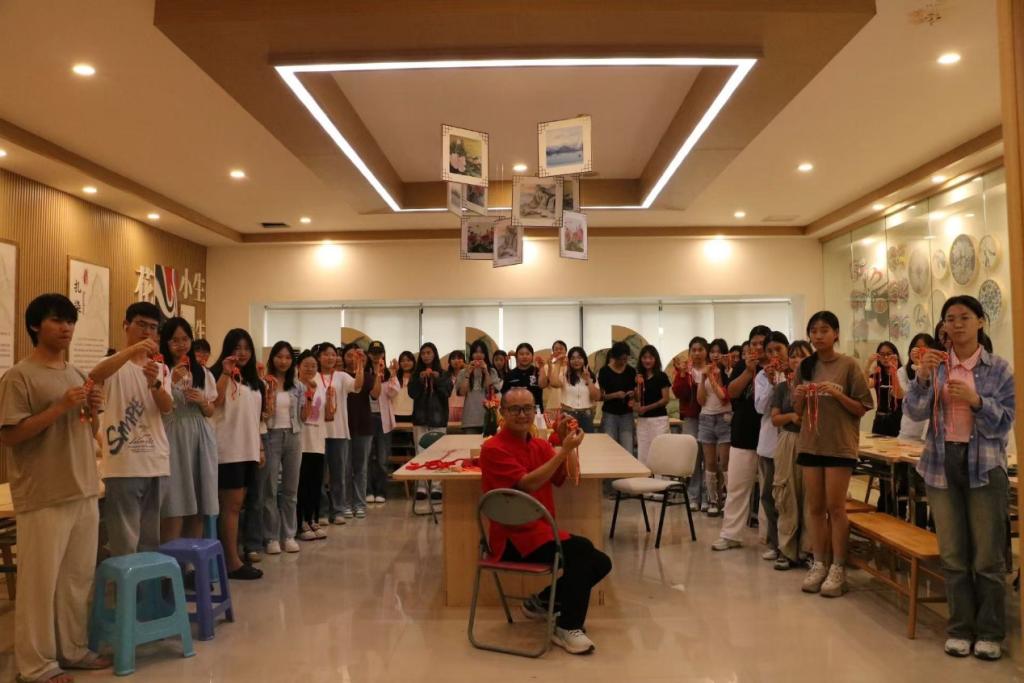 在杨老师的耐心指导下,同学们很快投入到绳编创作中。指尖翻飞间,原本松散的彩绳逐渐缠绕、打结,一个个蕴含着“吉祥如意、团圆美满”寓意的双钱结慢慢成型。从最初的生疏打结,到后来的熟练编织,同学们的脸上满是专注与喜悦。“亲手编中国结和看成品完全不一样,不仅感受到了传统工艺的巧妙,更觉得这根绳子里藏着老一辈手艺人的心血,藏着咱们中国人对美好生活的期盼。”参与活动的同学分享道。这份亲手创作的成就感,让大家对非遗文化的认同感与自豪感油然而生。