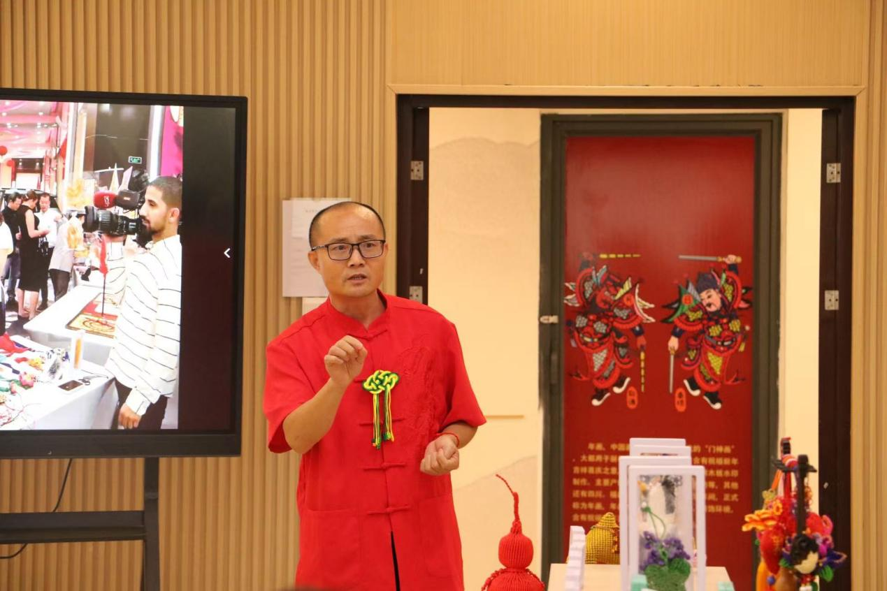 活动现场,杨文艺老师的严谨与细致感染着每一位同学。他提前精心准备了色彩丰富的绳编线材、工具包等材料,以自身三十余年深耕绳编非遗传承的亲身经历为切入点,向同学们生动阐释了劳模精神与非遗传承的共通内核。“无论是打磨一门技艺,还是坚守一份传承,最需要的就是‘坐得住冷板凳’的耐心、‘钻得进细节里’的专注,以及对传统文化发自内心的热爱。”杨老师的话语朴实而有力,让在场同学对“匠心”与“传承”有了更深刻的理解。