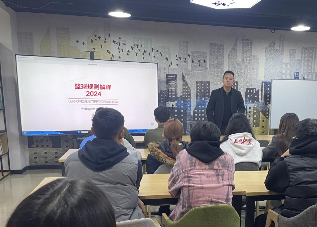 为规范校园篮球赛事执裁标准,提升比赛质量,并为广大篮球爱好者提供一个深入学习规则、锻炼执裁能力的平台,11月5日,“一站式”书香社区举办了一场生动的校园篮球裁判员培训班。本次培训由裁判员、学生工作部部长田刚成老师主讲,旨在培养一支具备专业素养、公正执裁的学生裁判员队伍。
