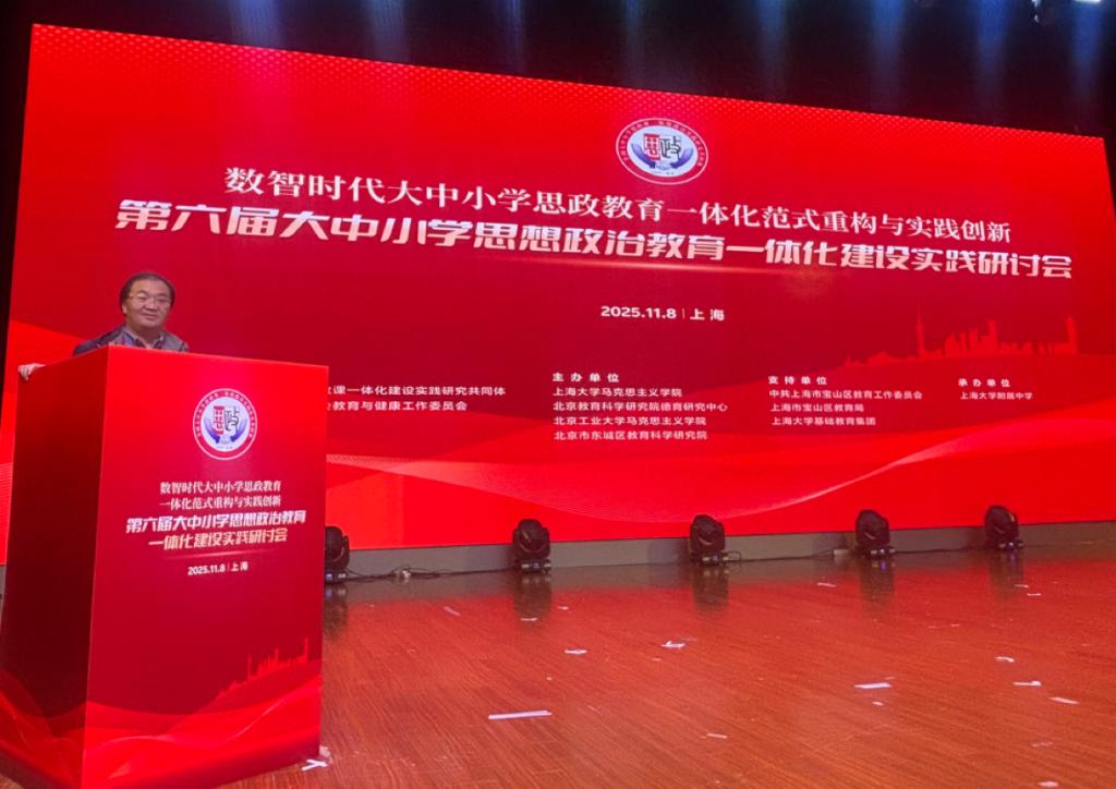 2025年11月8日,全国大中小学思政课一体化建设实践研究共同体第六届大中小学思想政治教育一体化建设实践研讨会在上海大学隆重召开。四川财经职业学院马克思主义学院党建与思政研究中心副主任张志博士、红色财经文化研究中心单立阳应邀参会,与来自全国高校、中小学的专家学者共同探讨思政教育一体化建设的实践路径。
