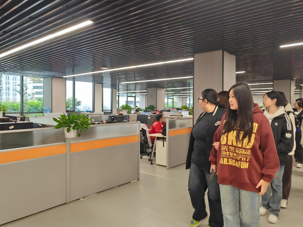 随后,师生们走进公司办公区,近距离观察企业工作环境、项目开发流程,直观感受技术团队协作模式,真切体会到职场中的高效工作氛围。