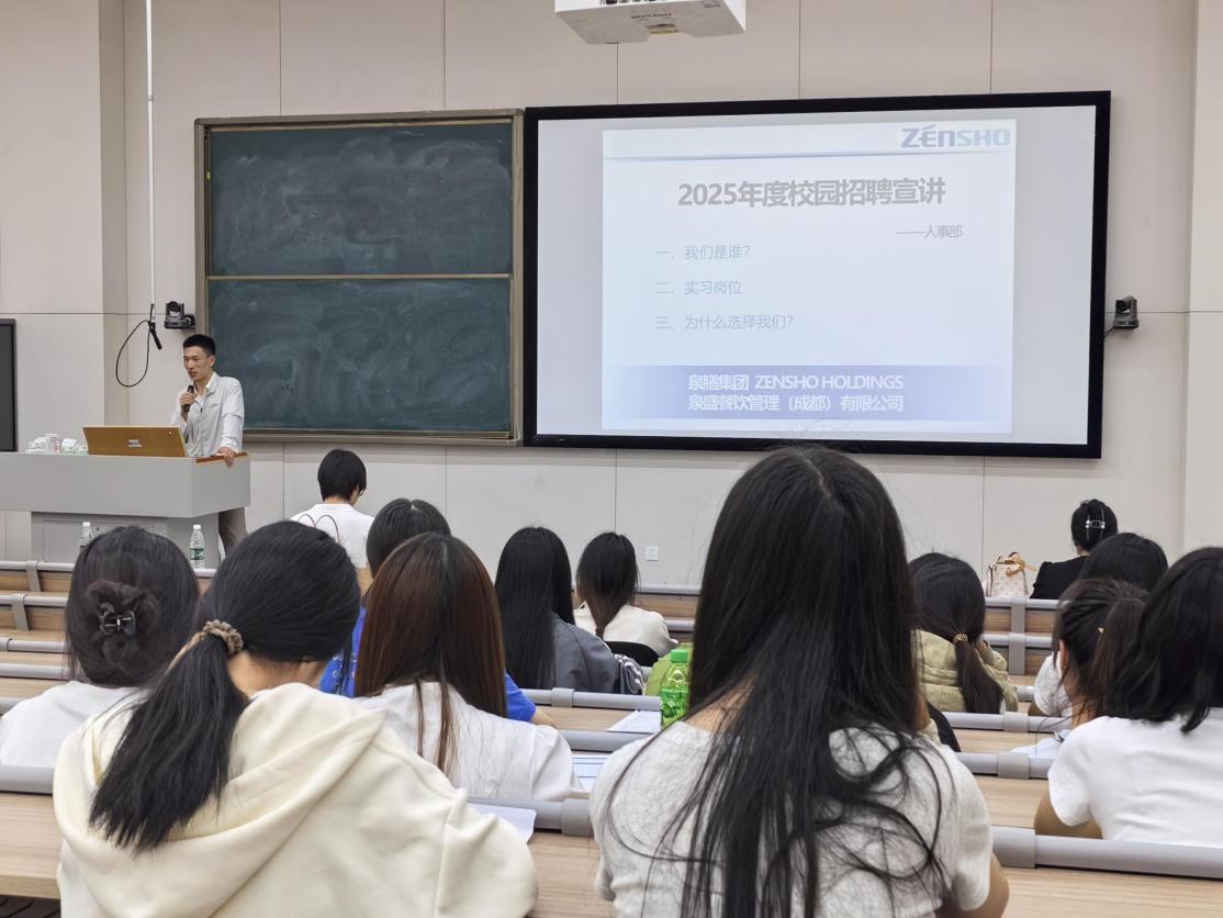 2025年5月7日14:00,会计学院联合泉盛餐饮管理(成都)有限公司在至诚楼B112教室开展泉盛餐饮单班宣讲会;此次宣讲会由泉盛餐饮管理(成都)有限公司区域经理陈中福主讲,公司人力资源经理蒲思宇(2012级学生),会计学院校企合作干事郭海川,会计学院23级约50余名同学参加。