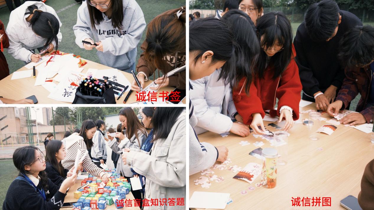 诚信是中华传统美德的核心要义,也是社会主义核心价值观的重要内容。为了让广大青年学子在体验中铭记诚信价值,筑牢品德根基,2025年11月11日下午,四川财经职业学院会计学院团总支组织部精心策划的“以诚润心,以信聚力”诚信主题游园会在小足球场开展。