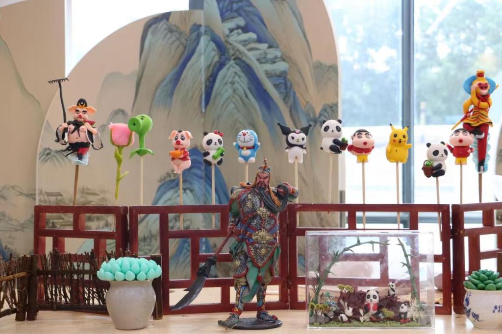 作品展示环节亮点纷呈。张老师带来的精品佳作涵盖三大类别:成都老茶馆的传统民俗造型、深受年轻人喜爱的动漫新潮形象,以及曾赴迪拜、英国参与国际文化交流的代表性作品。这些栩栩如生、神态各异的面塑作品,让大家直观领略到面塑艺术“小中见大、形神兼备”的精髓所在。
