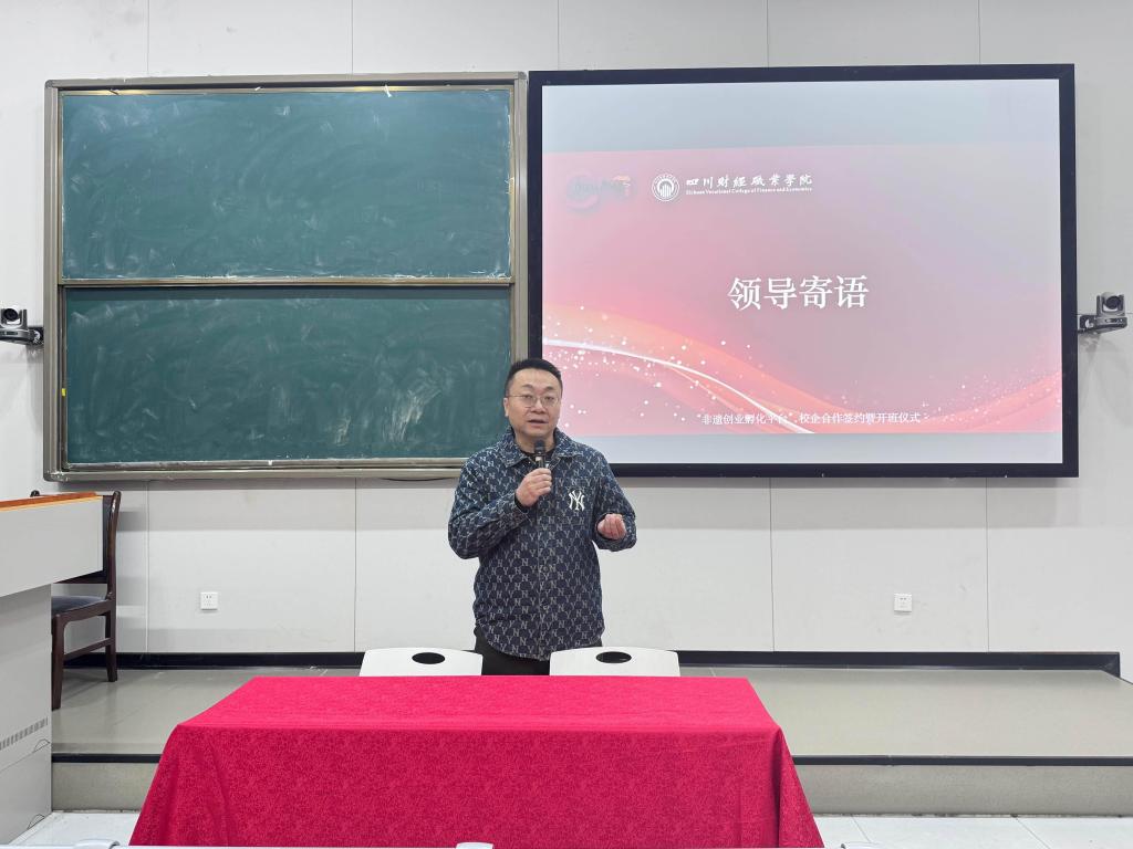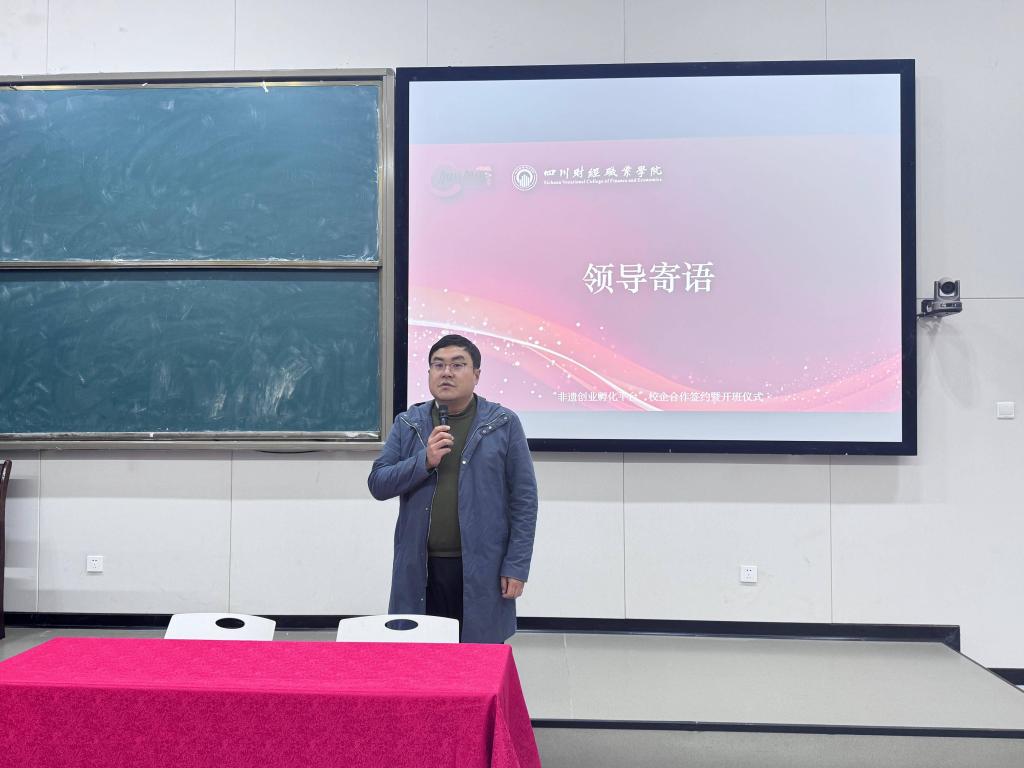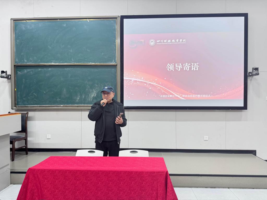 2025年11月18日下午,四川财经职业学院B208阶梯教室举行了“加贝加倍—四川财经职业学院非遗MCN创业孵化平台”落成典礼、校企合作协议交换暨首期创业孵化班开班仪式。工商管理学院党总支书记梁小晓、招生就业处副处长黄睿、加贝加倍公司创始人廖启华、总经理李琼瑶,以及工商管理学院实习实训教研室主任李萍、团总支书记王欣然、平台企业导师等出席了此次活动。