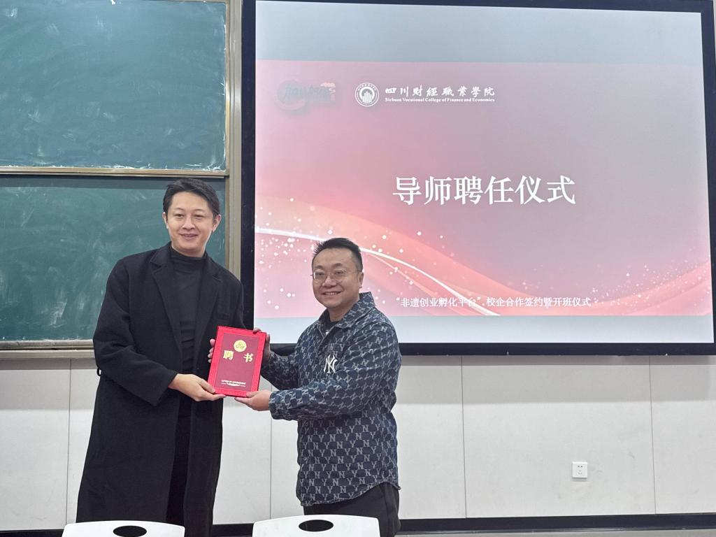 仪式上,黄睿代表招生就业处(创新创业学院)致辞,对项目落地及后续行动支持进行了说明,并现场为企业导师颁发校外创业导师聘书;梁小晓对项目后期发展寄予了厚望;廖启华就项目执行与考核提出了具体要求。现场全体学生在总负责人带领下宣誓:恪守匠心、勤学苦练,传承非遗,书写创业华章。