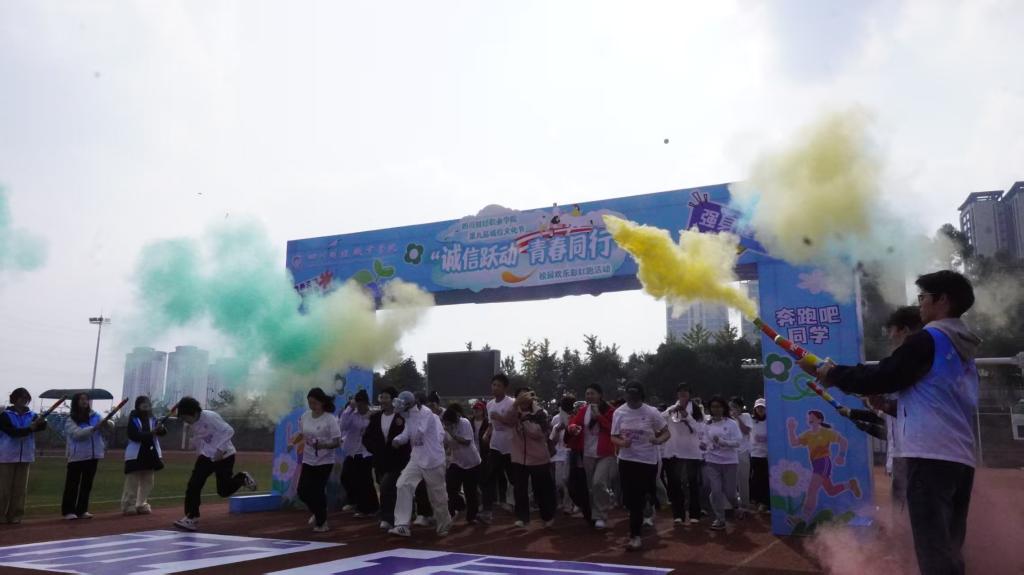 11月25日,会计学院第九届诚信文化节“诚信跃动 青春同行”校园欢乐彩虹跑活动在学校操场热力启幕。本次活动由会计学院主办,面向全校学生。四川财经职业学院党委委员、副院长罗潇,学生工作部部长田刚成,院团委书记高菁,会计学院党总支书记杨晓荣,会计学院副院长胡小凤,会计学院团总支书记罗兰杰及会计学院全体专兼职辅导员出席活动,共同见证这一融合运动活力与诚信文化的青春盛事。