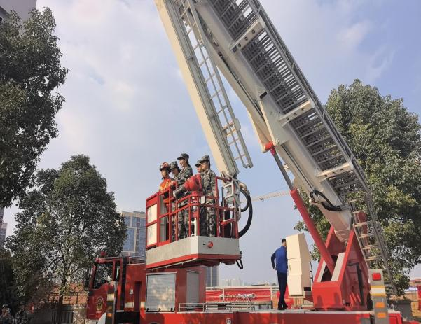 随后,师生们近距离观摩了消防员攀爬训练墙、挂钩梯登楼等技能展示。消防员演示动作敏捷、配合娴熟,赢得现场阵阵掌声。在确保安全的前提下,民兵连代表还在消防员指导下体验了基础攀爬动作,切身感受消防训练的强度与艰辛,深刻体会“火焰蓝”背后的使命与担当。