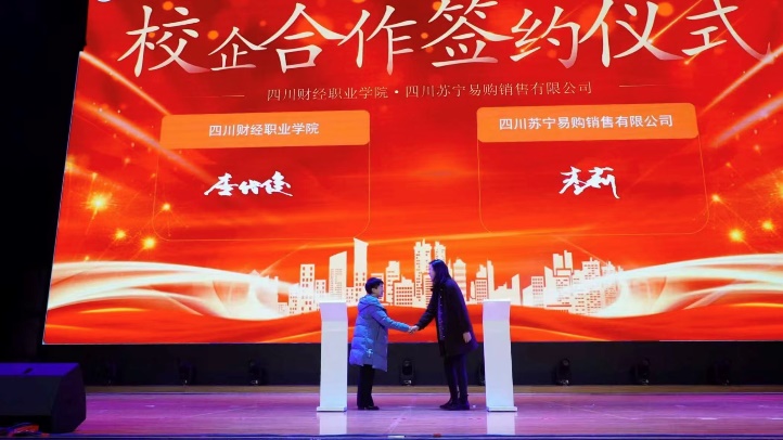 晚会现场,四川苏宁易购销售有限公司与学院签署了党建联建与校企合作协议,标志着我院校企协同育人迈出坚实新步伐。