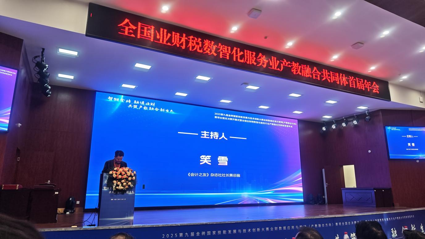 为紧跟数字经济时代财税行业发展浪潮,深化产教融合协同育人机制,11月29日,四川财经职业学院财税学院派代表应邀赴长沙,参加全国业财税数智化服务行业产教融合共同体首届年会。本次会议以“数智赋能财税治理,产教融合共育新才”为核心议题,通过主题报告、实践分享等环节,汇聚全国政行企校多方代表,为职业教育对接产业需求搭建了高质量交流平台。