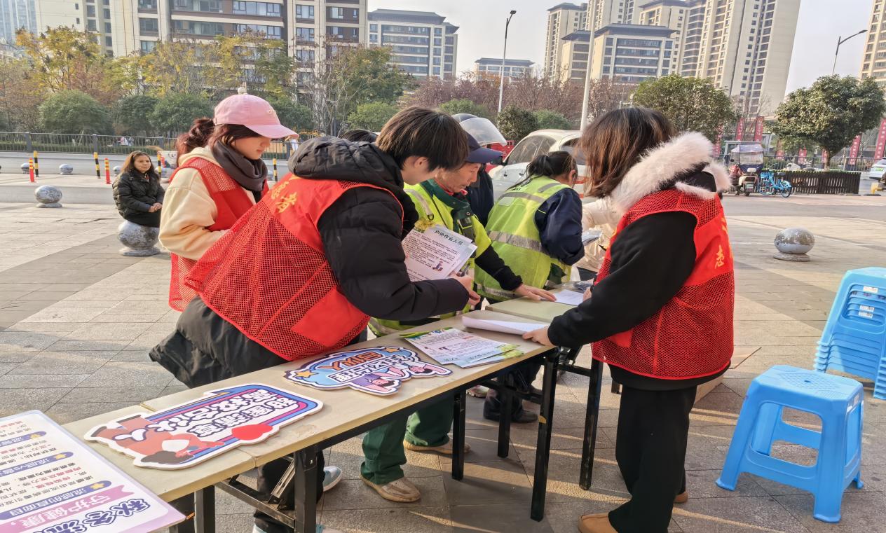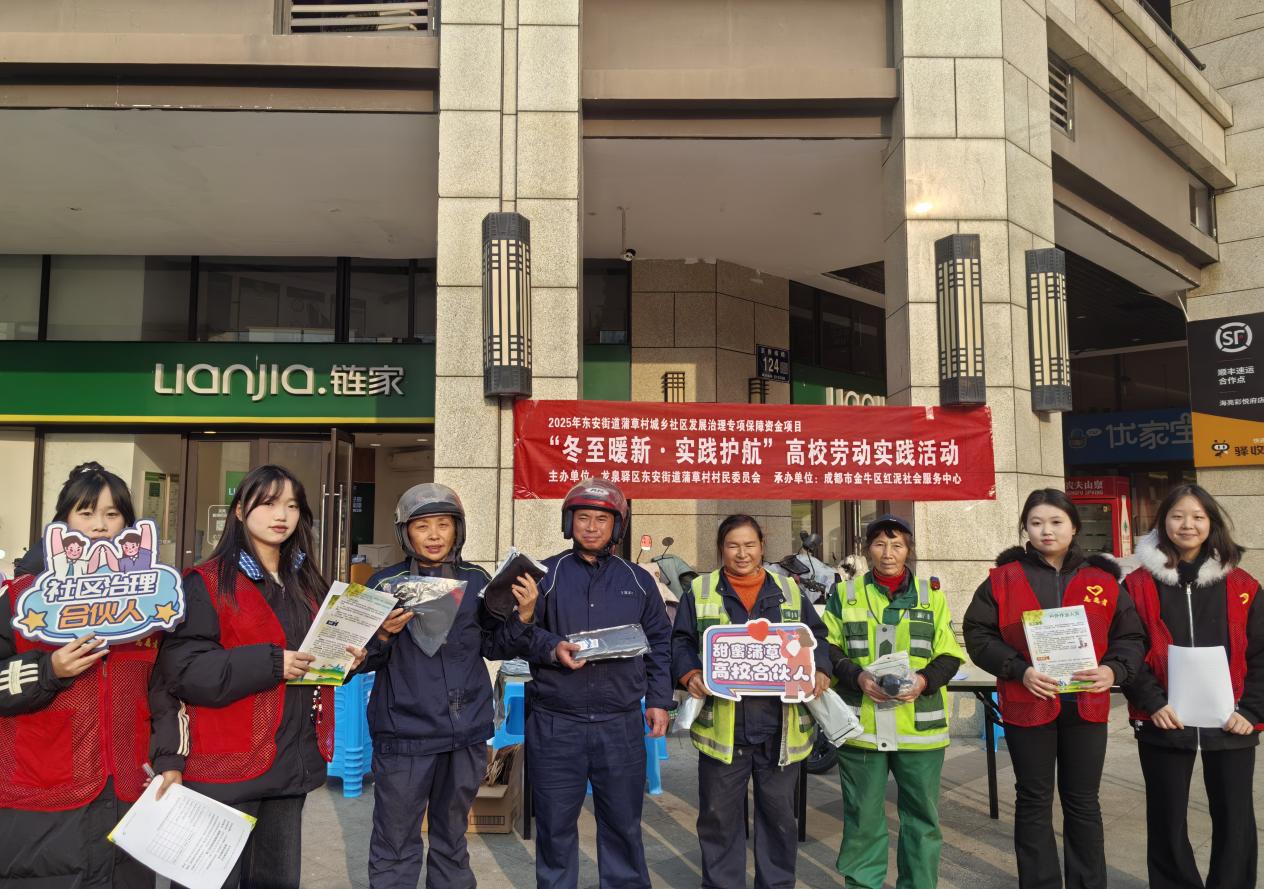 寒冬凛冽,温情不减。2025年12月16日下午,由四川财经职业学院会计信息管理教研室与信息学院团总支联合主办,东安街道蒲草村城乡社区协办的“冬至暖新·实践护航”冬日高校实践活动,在蒲草村社区广场温情启幕。来自2025级会计信息管理专业的数十名学子,将专业知识融入社区服务,为辛勤工作在冬日户外的环卫工、外卖员、快递员等“城市守护者”送上了一份独特的冬日温暖。