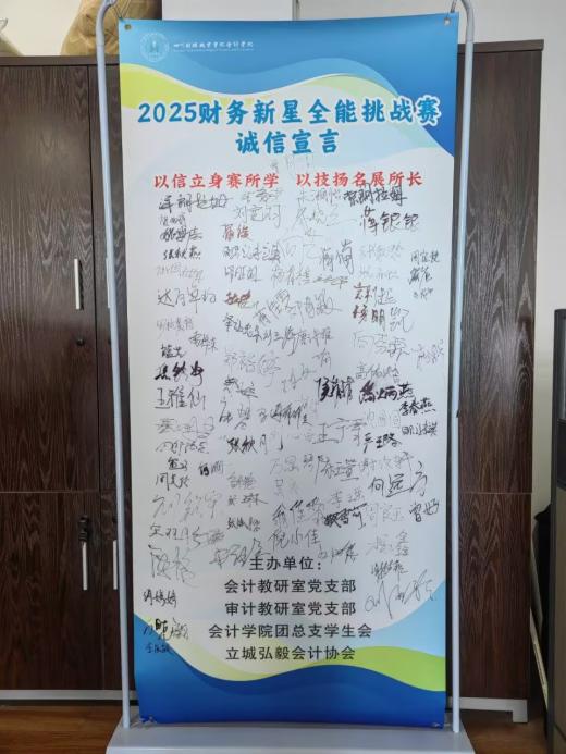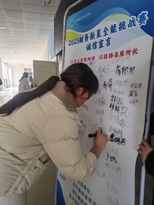 本次财务新星全能挑战赛特别增设“诚信宣言”签署环节,将“诚信竞赛”的理念融入竞赛,呼应财会行业“诚信为本,操守为重”的职业传统,体现了比赛育人树德的内在追求。