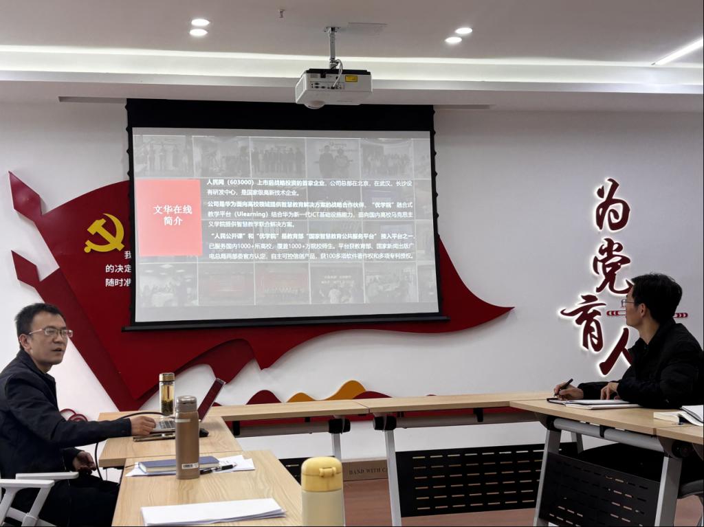 2025年12月23日,马克思主义学院特邀北京文华在线教育科技股份有限公司销售总监仇星涛、销售经理青艳娟,为全院教师开展红色财经资源库与红色财经VR智慧云馆专题培训。本次活动旨在深化特色马院建设,推动数字化红色财经教育资源与课堂教学深度融合,提升思政课程吸引力与实效性。
