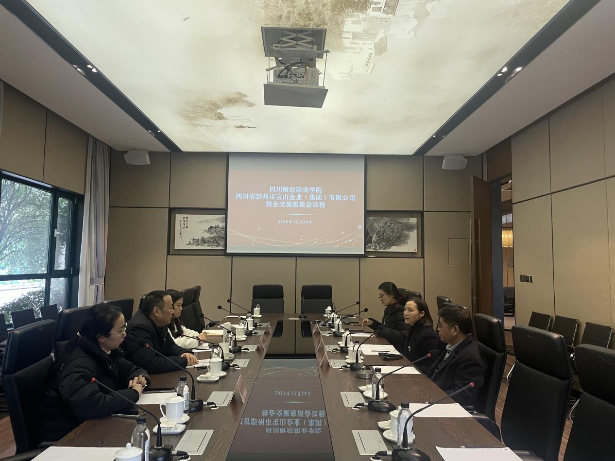 2025年12月24日下午,四川财经职业学院会计学院党总支书记杨晓荣带领会计学院专职组织员龚雪瑶、学生第二支部书记夏显莲、宣传组织委员雷惠婷,前往四川省彭州市宝山企业(集团)有限公司开展访企拓岗与党建交流活动。双方以“校企交流合作”为主题,实地走访、深入座谈,共商校企协同育人与党建深度融合新路径。