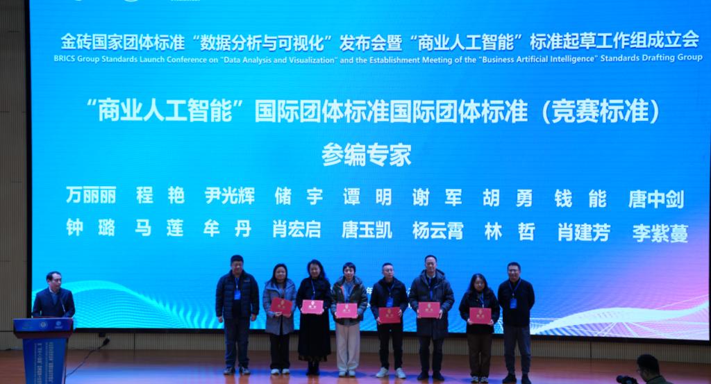 2025年12月26—27日,由金砖技能与技术标准化工作委员会、一带一路暨金砖国家技能发展国际联盟主办,一带一路暨金砖国家技能发展国际联盟大数据和人工智能专业工作委员会、安徽电子信息职业技术学院及重庆翰海睿智大数据科技股份有限公司联合承办的金砖国家团体标准“数据分析与可视化”发布会暨“商业人工智能”标准起草工作组成立会,在安徽蚌埠安徽电子信息职业技术学院圆满落幕。
