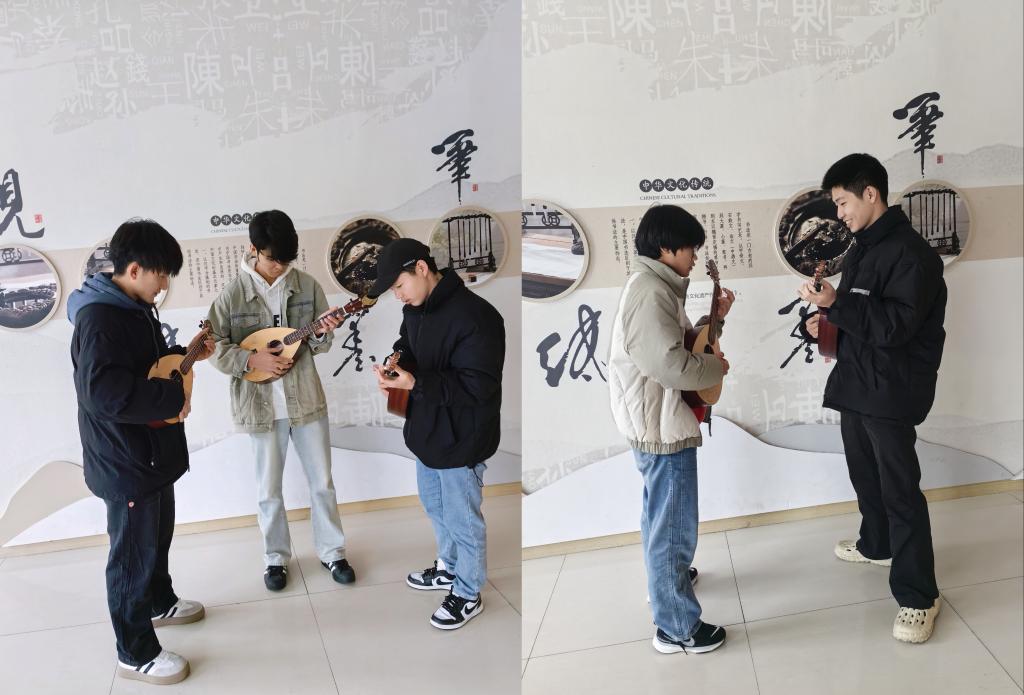 近日,四川财经职业学院中华小四弦公选课课后特色互助活动温情启幕。作为深受学生喜爱的公选课,中华小四弦共开设两个班级,此次课后特色活动以“跨班携手,以乐共进”为核心,组织两个班级的同学齐聚一堂,通过互相指导、协同练习的方式提升演奏技艺,让传统民乐的韵味在课后时光中流淌,更让互助共进的氛围浸润校园。活动现场,两班同学自发结对、自由分组,形成了“强带弱、优互补”的良好氛围。2班的涂同学陪着1班的胡同学跟着节拍器反复练习《鸿雁》的过渡乐句,不时提醒:“这里的节拍要稳,稍微慢一点,和后面的旋律衔接才自然。”这样一对一的互助场景在活动现场随处可见,同学们在交流中解决问题,在协作中共同提升。