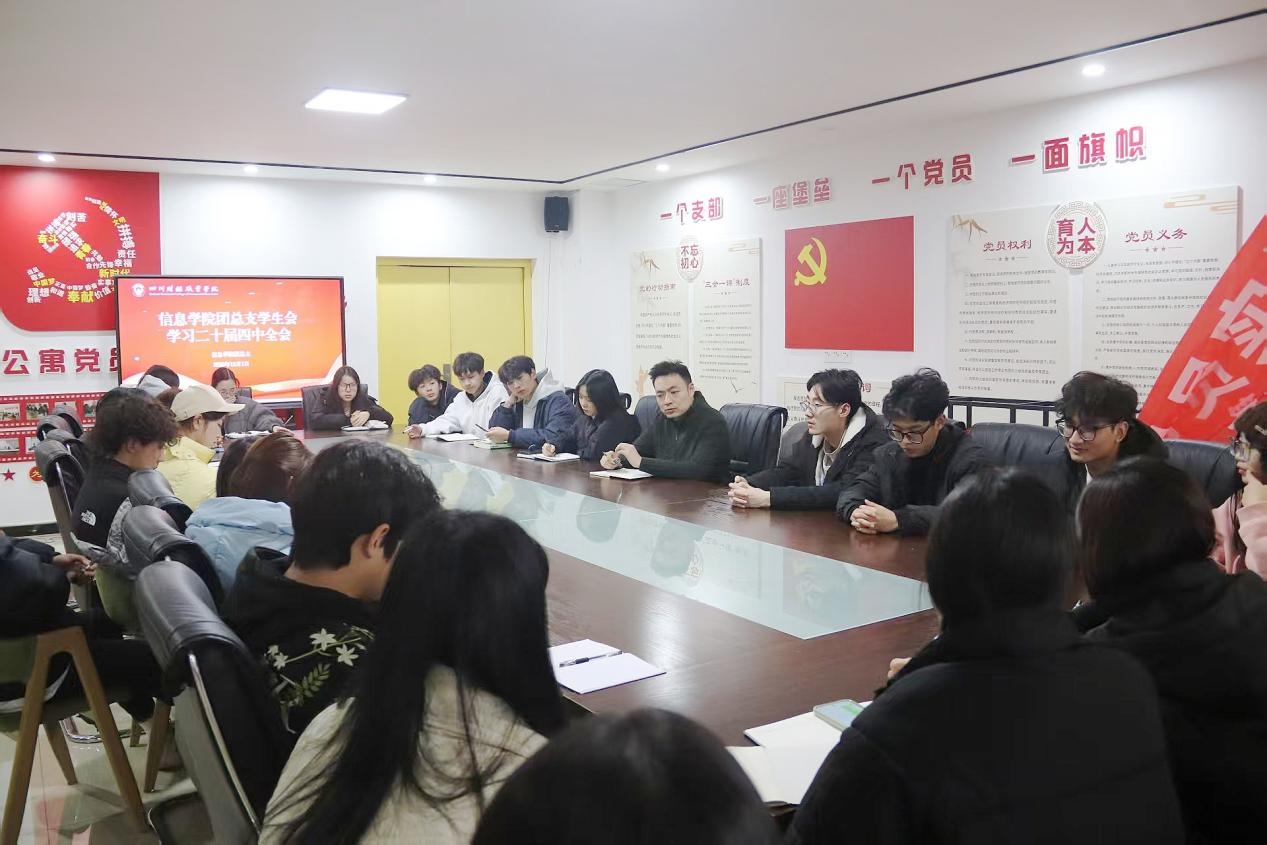 17.12月1日,信息学院于一站式社区党群服务中心党建会议室开展了党的二十届四中全会精神专题学习活动。信息学院党总支书记王东、团总支书记王艺霏、团总支学生会全体干部参与此次专题学习活动。