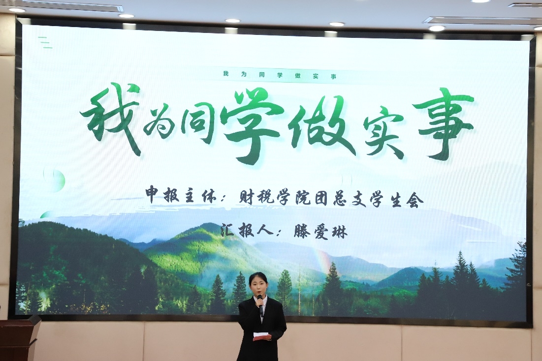 11月11日,校团委在至诚楼B213顺利举办“我为同学做实事”项目成果汇报展示活动。本次汇报内容涵盖专业帮扶、公益实践等多个领域。来自各学院的六个项目的负责人通过图文并茂的演示和生动详实的讲解,全方位呈现了项目的立项初衷、推进细节、创新思路及显著成效,最终,团委选送的“团团赋能”项目、财税学院的“财税助航,三扶同行”项目、会计学院的“雷锋志愿服务点-拾物驿站”项目获得前三名,成功晋级省级展演。