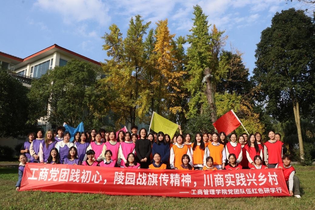 13.11月15日,工商管理学院团总支书记王欣然、辅导员谢敏怡老师带队,组织50名2025年秋季新发展团员与入党积极分子赴成都市郫都区,开展以“工商党团践初心,陵园战旗传精神,川商实践兴乡村”为主题的红色研学实践活动。