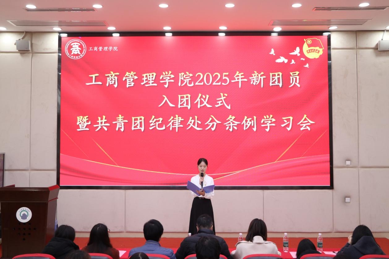24.12月8日,工商管理学院在至诚楼B213举行新团员入团仪式暨共青团纪律处分条例学习会。学院党总支书记梁小晓、团总支书记王欣然,相关辅导员、学生干部及109名新团员参会。
