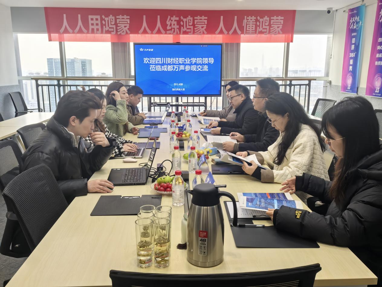 2026年1月30日,四川财经职业学院院长符刚带队,信息学院院长陈世平、副院长王曦,大数据技术教研室主任马莲、人工智能技术应用教研室主任余海、信息安全专业曹文静老师随行,赴成都万声信息技术有限公司开展访企拓岗活动,深化校企合作,精准对接人才需求。