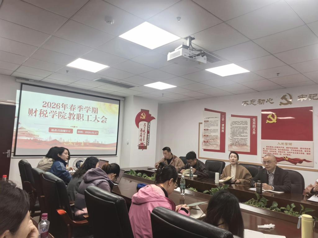 2月27日,财税学院在明德楼512会议室召开2026年春季学期全体教职工大会,深入学习贯彻学院党委书记张华、院长符刚在春季学期干部大会上的重要讲话精神,全面部署新学期重点工作。会议由学院党总支书记陈露主持,全体教职工参加。