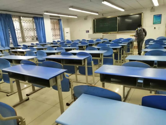 在后勤服务中心的部署下,校园物业及修缮管理科组织相关人员开展了全院环境消杀工作,特别是重点区域的消杀工作,如教学楼、学生公寓、行政楼、图书馆等。工作人员对全院公共设施,供水设备及电力设备等进行维护和检修。绿化人员修剪枯枝败叶,及时补栽花木。
