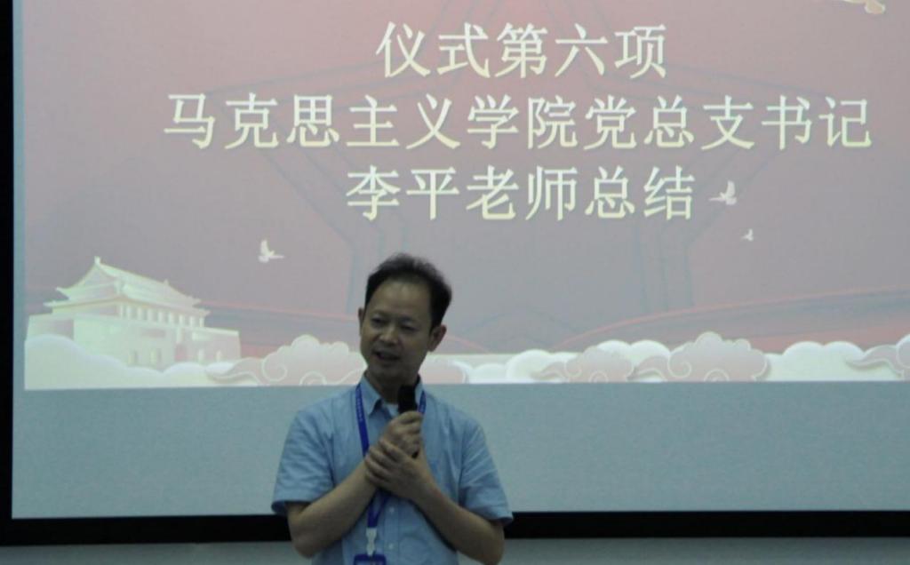 马克思主义学院党总支书记李平老师向揭牌仪式表示祝贺,希望各位同学胸怀“国之大者”,努力学习和传播马克思主义和中国特色社会主义理论,让理论之树常青,全面发展,自觉服务社会、服务人民,做时代的担当者。