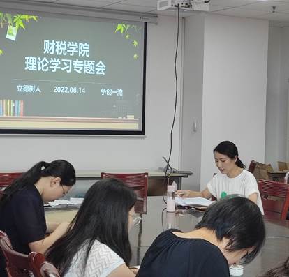 为学习四川第十二次代表大会报告精神、习近平在四川考察时的重要部署决策、习近平对不断做强做优做大我国数字经济的重要指示,2022年6月15日下午,财税学院全体教职工在行政楼512会议室召开本学年第六次理论学习专题学习会。会议由财税学院院长祝刚主持并讲话,财税学院党总支副书记陈露领学部分文件。