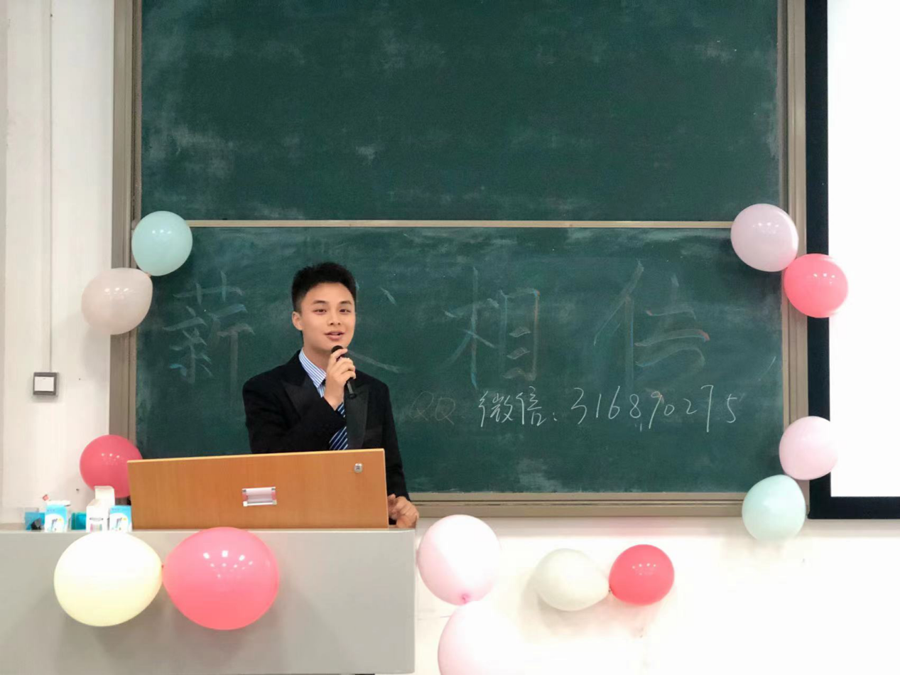 紧接着是原财税金融系2018级学生,曾任财税金融系第十二届团总支学生会主席,现就读于四川师范大学的欧阳俊棋学长进行经验分享。他以“曾经自卑害羞的抑郁少年,现在照亮别人的有志青年”为主题,讲述了从小学到大学的五个阶段,用五个不同的关键词概括他的人生经历。他用自己坎坷又励志的经历来激励我们,愿我们不被挫折打败,不忘初心、砥砺前行,创造属于我们自己的精彩人生。