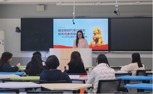活动伊始,青年委员陈秋霖同志以《学习贯彻2026年全国审计工作会议精神》为题讲授精品党课。授课中,她围绕“为什么学、学什么、怎么用”三个核心维度层层展开:在“为什么学”上,明确2026年作为“十五五”规划开局之年,全国审计工作会议为新时代审计工作高质量发展擘画了行动蓝图,学习领会会议精神具有极强的时代意义和实践价值;在“学什么”上,深入解读会议对审计工作政治属性、核心职能定位的重要阐释,指出其是护航经济社会高质量发展的“定盘星”;在“怎么用”上,系统拆解会议部署的重点工作任务,清晰梳理审计工作“审什么、怎么审”的实践路径。同时,陈秋霖同志结合高职审计专业育人实际,从政治素养、专业能力、实践培养等方面,分享了会议精神对审计专业人才培养的7大启发,推动会议精神与专业建设、人才培育深度融合。