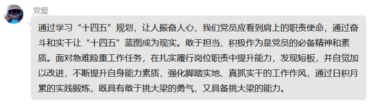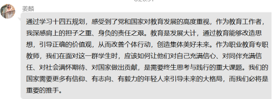 通过本月对“十四五”规划的学习,党员老师们纷纷感言收获很大。