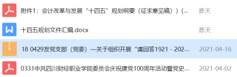 4.2021年4月,教工第二党支部全体党员自觉学习国家、四川和成都市“十四五”规划,并组织老师们积极参与学院双高计划申报。学习形式为QQ群文件自主学习。学习内容如下: