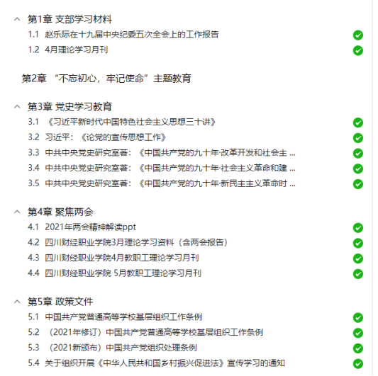 4.2021年4月,教工第一党支部全体党员自觉学习国家、四川和成都市“十四五”规划,并组织老师们积极参与学院双高计划申报。学习形式为“学习通”。学习内容如下: