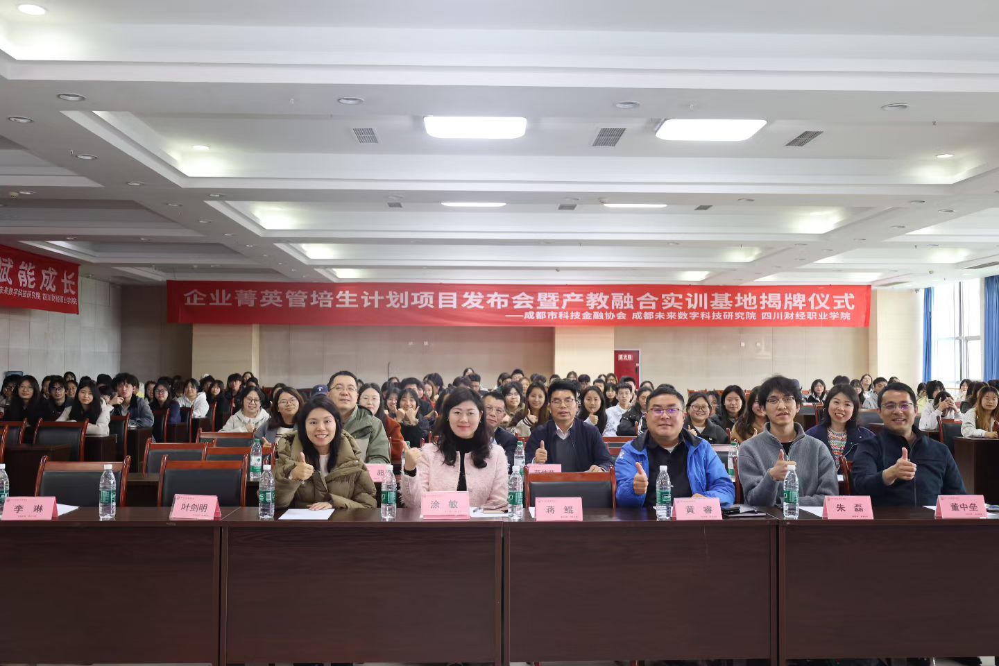 3月17日,四川财经职业学院金融学院联合成都市科技金融协会共同举办的“校协园企‘企业菁英管培生计划’项目发布会暨产教融合实训基地揭牌仪式”在学院隆重举行。本次活动标志着继去年“校协园企党建先锋队”成立后,双方党建联建与产教融合迈入2.0新阶段——从“学生走出去、专家走进来”的1.0模式,升级为“靶向破解就业结构性矛盾、全链条锻造高素质技能型人才”的深度攻坚。