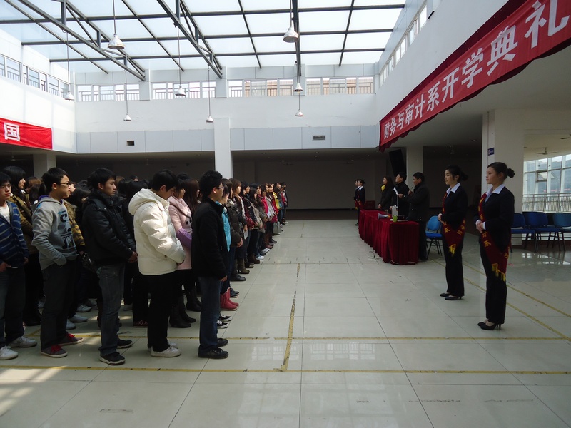 伴着新年的钟声,四川财经职业学院财务与审计系开学典礼于2011年2月22日14时在食堂三楼举行我系全体学生参加了此次典礼。系主任尹东老师,党支部书记刘波老师,学生党支部书记曾小琦老师及各班辅导员也出席此次开学典礼,并先后发表重要讲话。