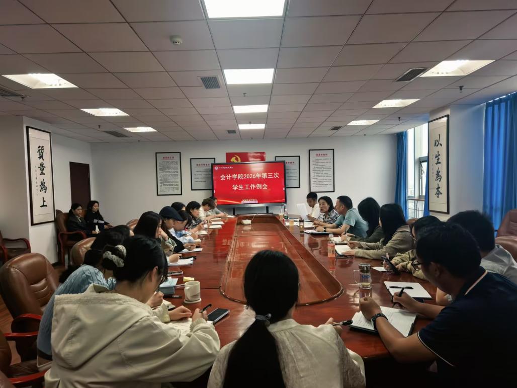 为统筹推进新学期学生工作高质量开展,压实工作责任,明确工作方向,会计学院于4月10日13点在明德楼613召开学生工作专题会议,学院党总支书记杨晓荣、党总支副书记张玮、团总支书记罗兰杰及全体专兼职辅导员参会。
