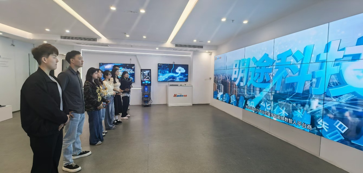 研学期间,师生重点参观明途科技数字展厅,在企业工作人员讲解下,深入了解WorkBrain系列产品的核心技术、功能体系与政务服务、企业运营等场景落地应用,同步学习数字大脑、具身智能体、数智人等前沿技术、直观感受商务数据分析在政务服务、企业运营、个体创业数字化转型中的核心价值,实现专业理论与行业实战的精准对接。同时了解了OPC(One Person Company,一人公司)生态的完整技术矩阵。