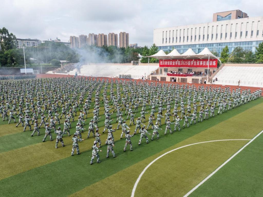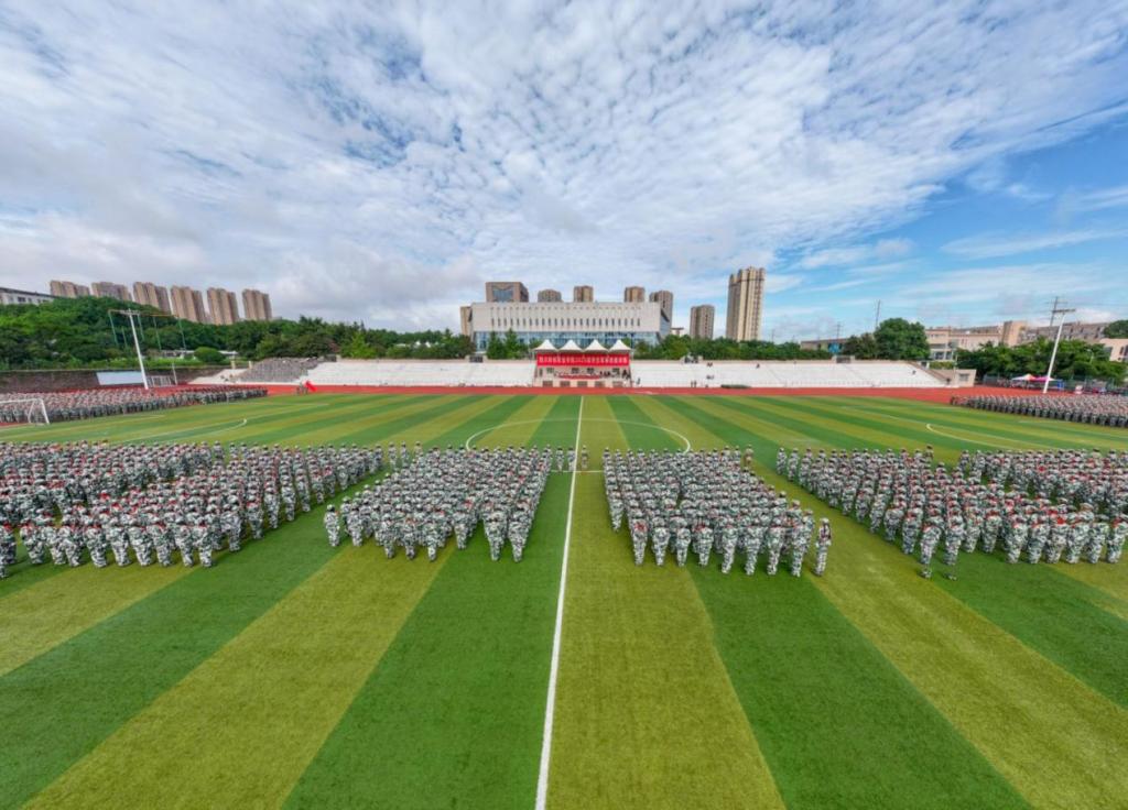 9月19日上午,学院2025级新生军事训练成果汇报暨表彰大会在田径场举行。学院党委书记张华、院长符刚,学院党委委员、副院长钟用、罗潇、李代俊,以及各职能部门、二级学院负责人,2025级全体辅导员、2025级全体参训学生、军训教官参加了大会,大会由罗潇主持。