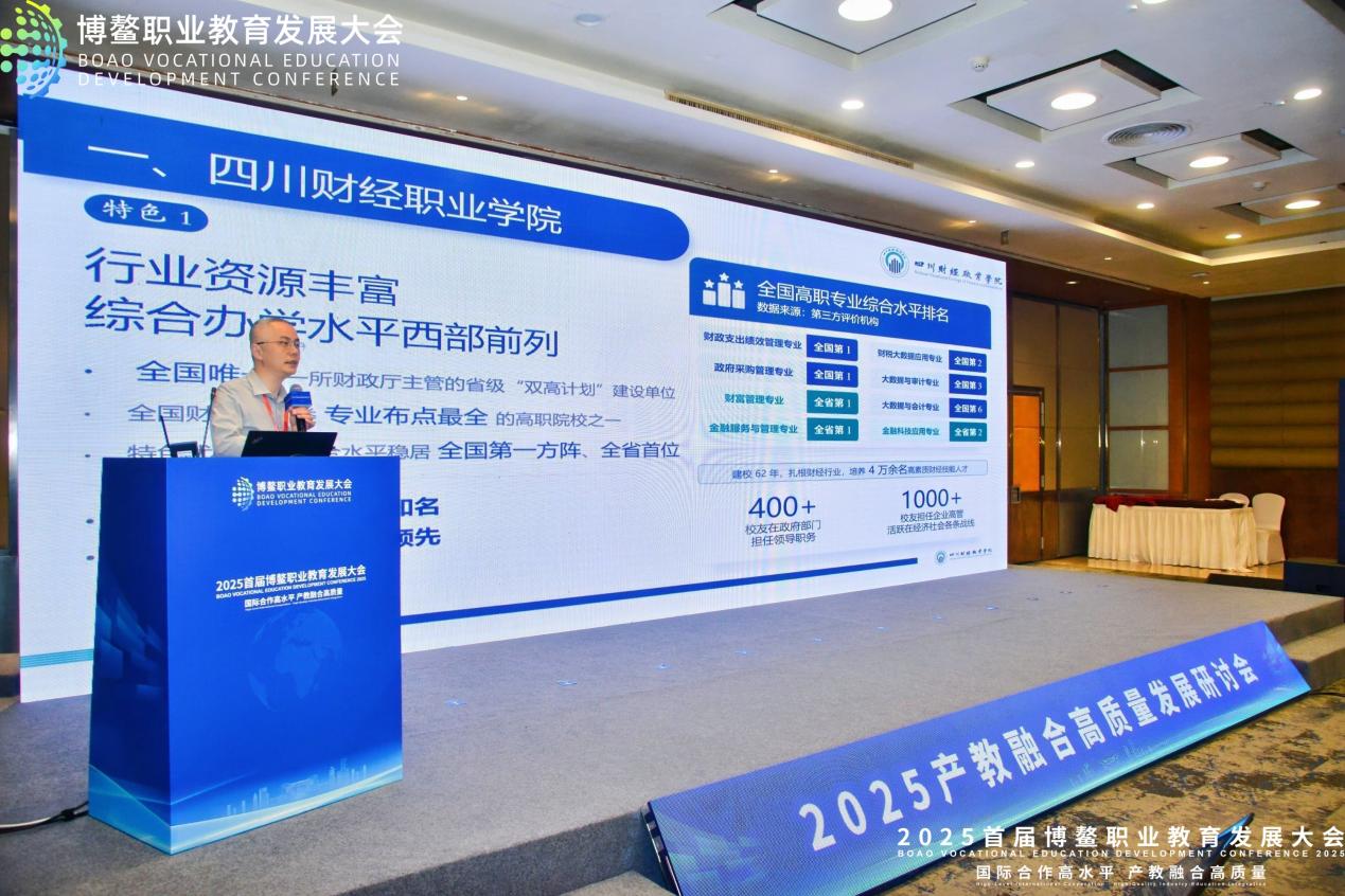 大会设立了多场平行论坛与专题研讨会,涵盖产教融合、国际化发展、数字化转型、STEM教育等多个前沿议题。在“产教融合高质量发展研讨会(二)”上,杨毅作了题为《产业人才需求大数据驱动下的“新双高”专业(群)建设》的主题报告。杨院长结合当前数字经济与产业升级背景,深入剖析了大数据在职业院校专业建设与人才培养中的关键作用,分享了我校在“新双高”建设中依托产业人才需求数据推动专业群优化、课程体系重构、教学资源智能化升级等方面的实践与思考。