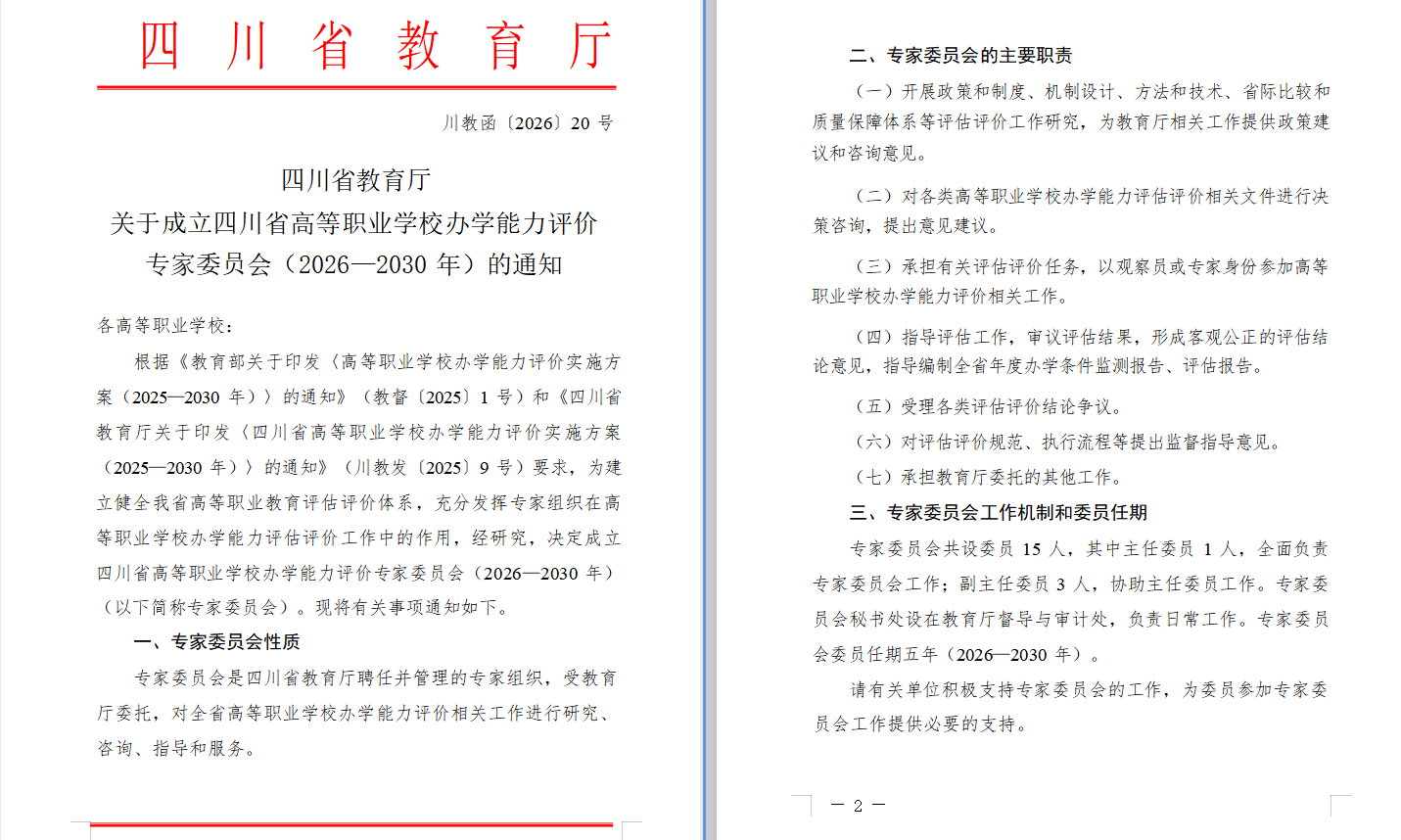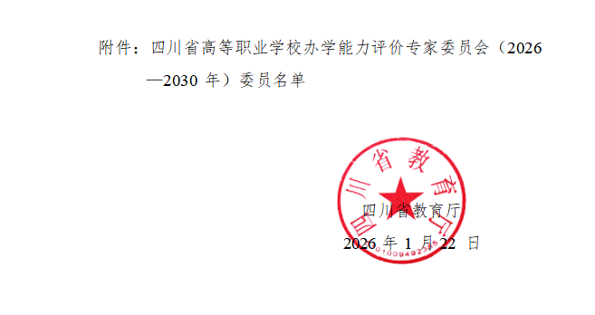 院长符刚教授入选“四川省高等职业学校办学能力评价专家委员会(2026—2030年)”委员。该委员会由省教育厅聘任管理,主要负责全省高职院校办学能力评价的研究、咨询与指导工作。符刚教授长期深耕教育管理与学科建设,主持多项省部级课题,荣获多项教学成果奖,其入选是对个人学术造诣与实践能力的高度认可。