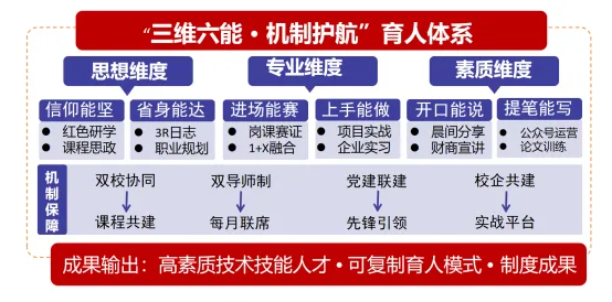 制度模式成型。学院牵头制定了试点项目管理办法,推动“三维六能”育人模式在多个专业复制推广,形成了可借鉴、可输出的“川财经验”。