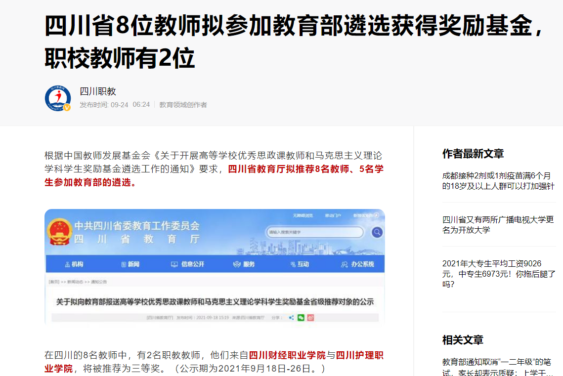 9月28日,教育厅官网公示四川省高水平高等职业学校(含培育)和高水平专业群建设计划拟立项单位...